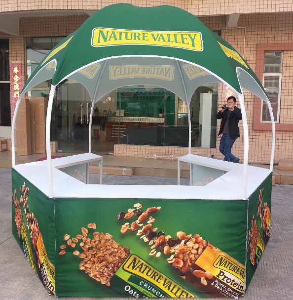 Need a wind and water-resistant design? Have a look at our outdoor displays! These portable outdoor displays will travel with you from show-to-show and hold up in the outside elements. Stake and other tie-down kits are available, as well as custom printing. Looking to attract attention on the street? Outdoor trade show displays put your people where your audiences are – outside.